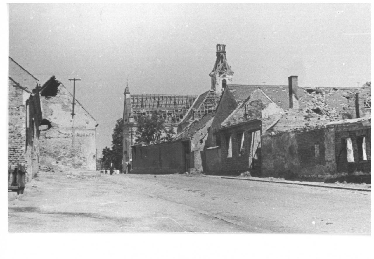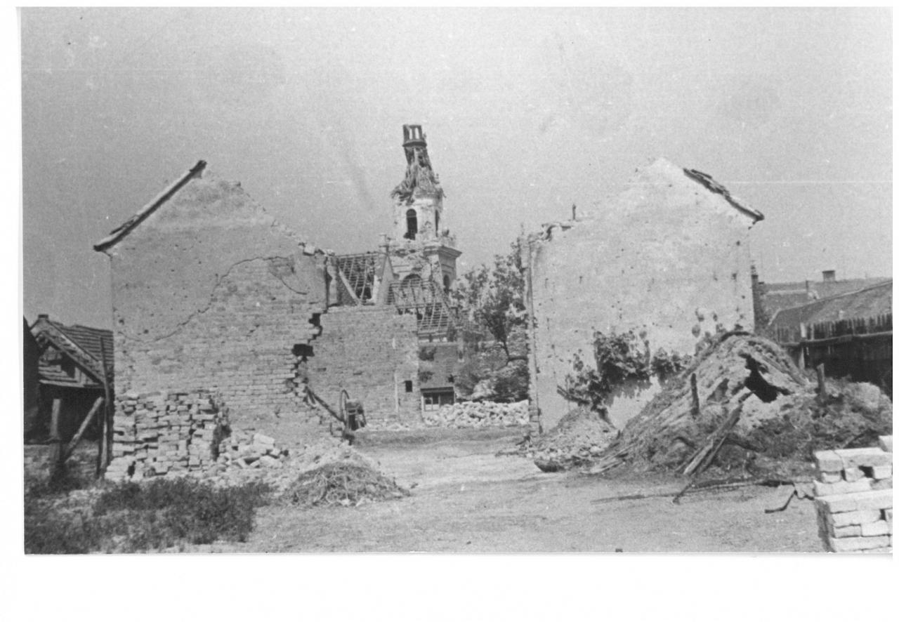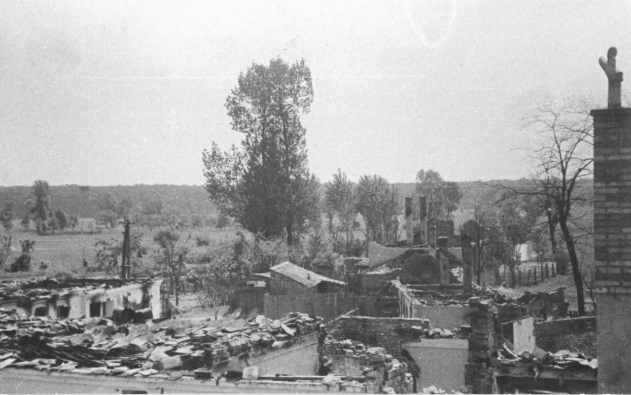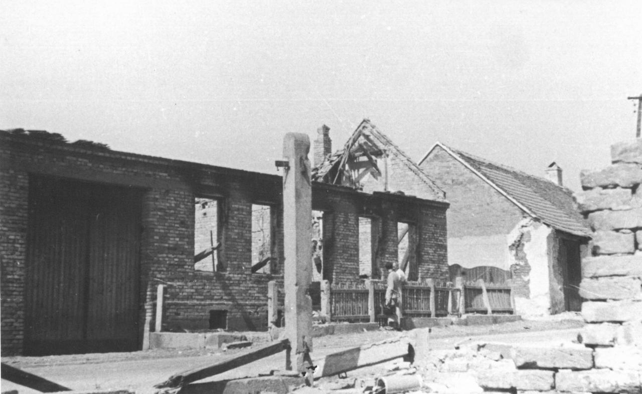 Sovětští průzkumníci se znovu dostali až do obce (na Kradlov, Stánisko a do Mlýnské čtvrti), ale stáhli se zpět. Ztráty byly velké, a proto bylo opět použito „kaťuší“, které po celé hodiny střílely na zbořenou obec. Nebylo jediné ulice, kde by nehořelo. Nejvíce byla postižena ulice Komárnov, U Struhy a Mlýnská čtvrť. Lidé umírali, domy hořely, dobytek pobíhal po okolí, všude jen trosky, dým a spoušť. Při ničení telefonického vedení z kostelní věže do německých palebných postavení byl těžce zraněn Cyril Bystřický.