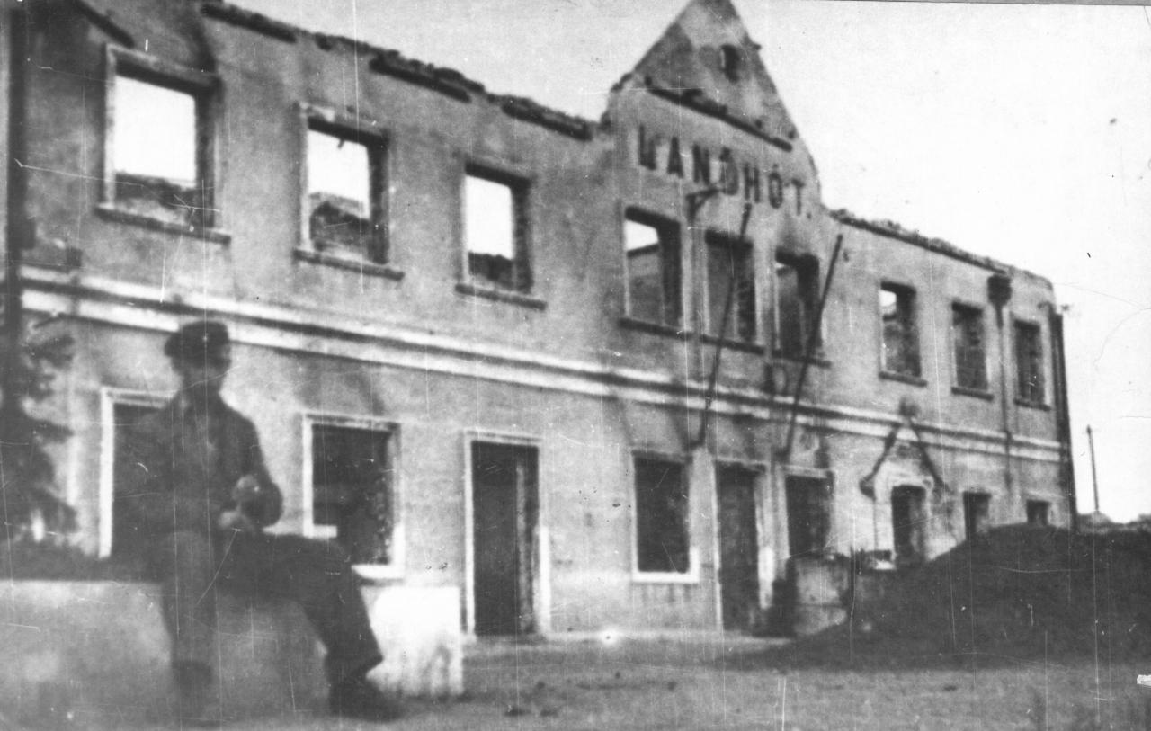 Přiletěla první sovětská bombardovací letadla a z palebných zbraní odstřelovala okolí trati. Začaly hořet první domy na ulici Nová a Nádražní. Byla zapálena nádražní budova, která vyhořela do základů. Občané bydlící blízko nádraží se po bombardování nádraží soustředili do větších sklepů a v restauraci u Straků, kde byl německý lazaret. U starého mlýna u zdi Ciprysových domu byli zabiti zřejmě dělostřeleckým granátem občané Josef Bystřický, Jaroslav Trávníček, Ludvík Trubač a Antonín Uher. Byli to první mrtví občané. Do obce vpochodovaly německé posily SS a SA.