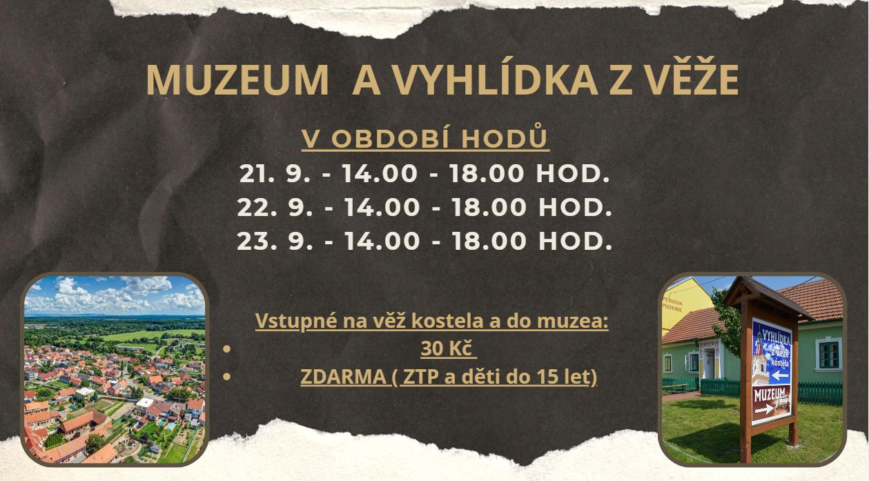 14.00 - 18.00 vyhlídka z věže kostela, muzeum-výstava krojových součástí malovaných
