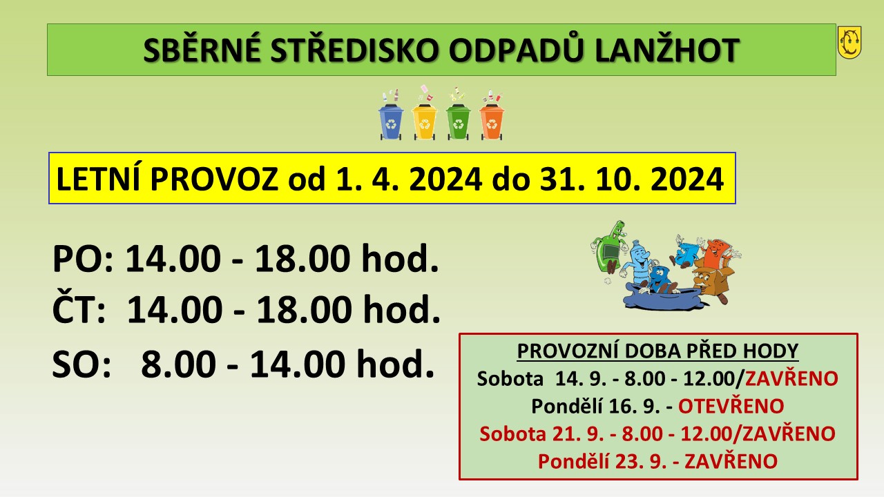 Po rozkliknutí najdete upravenou otevírací dobu přes hody i sběrného dvora.