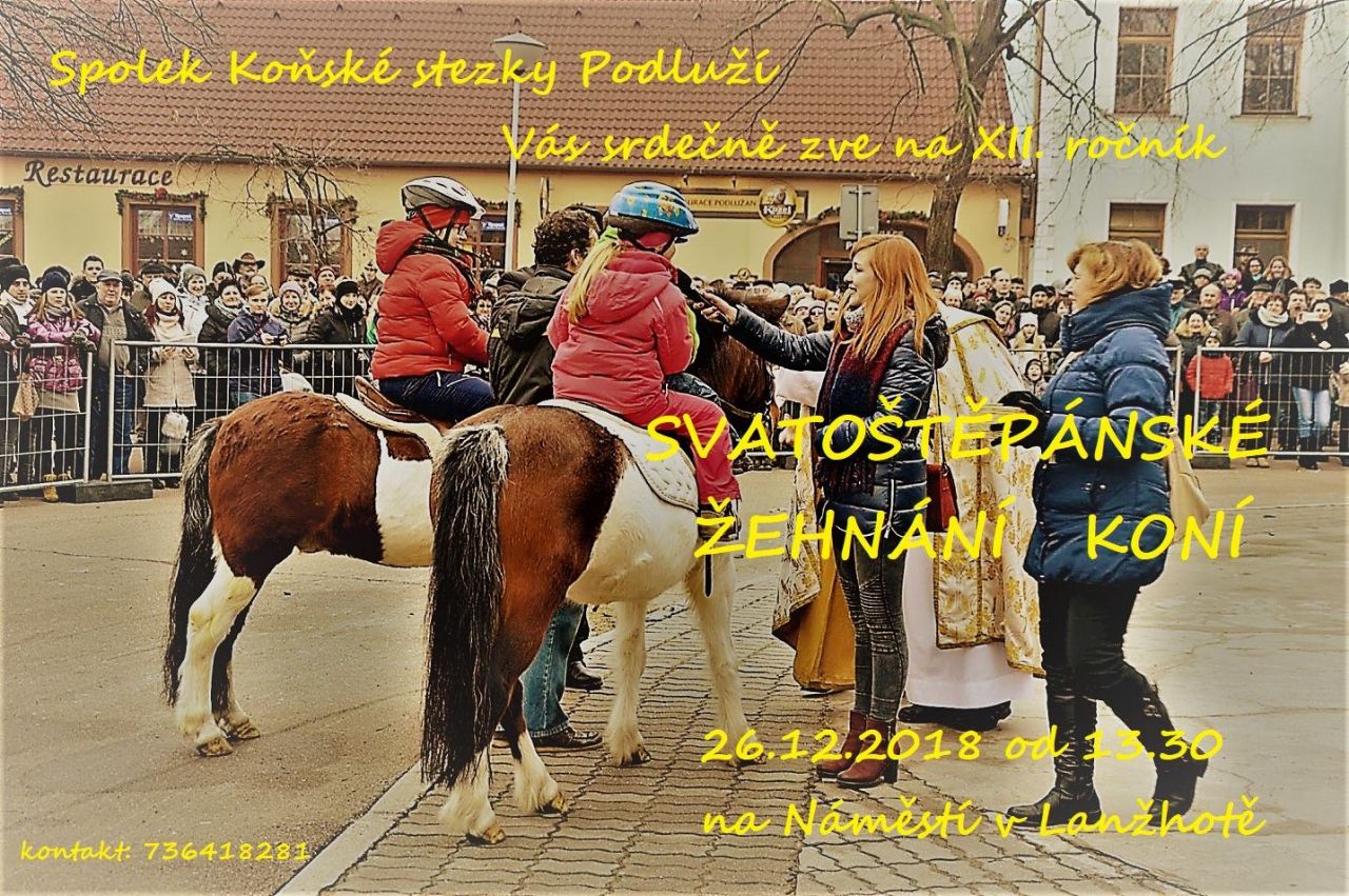 Spolek Koňské stezky Podluží Vás srdečně zve na XII. ročník SVATOŠTĚPÁNSKÉ ŽEHNÁNÍ KONÍ ve středu 26. prosince 2018 od 13.30 hod. na Náměstí v Lanžhotě.