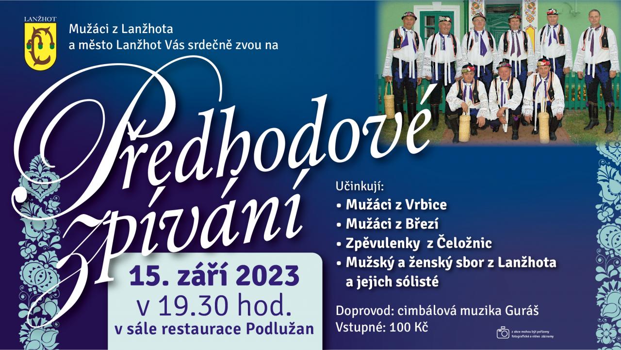 19.30 Předhodové zpívání mužského sboru a jeho hostů sál restaurace Podlužan