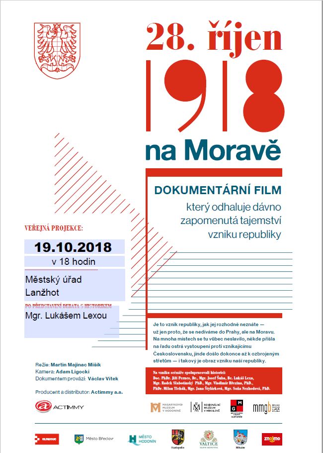 Zveme Vás na veřejnou projekci 28. říjen 1918 na Moravě - dokumentární film, který odhaluje dávno zapomenutá tajemství vzniku republiky.