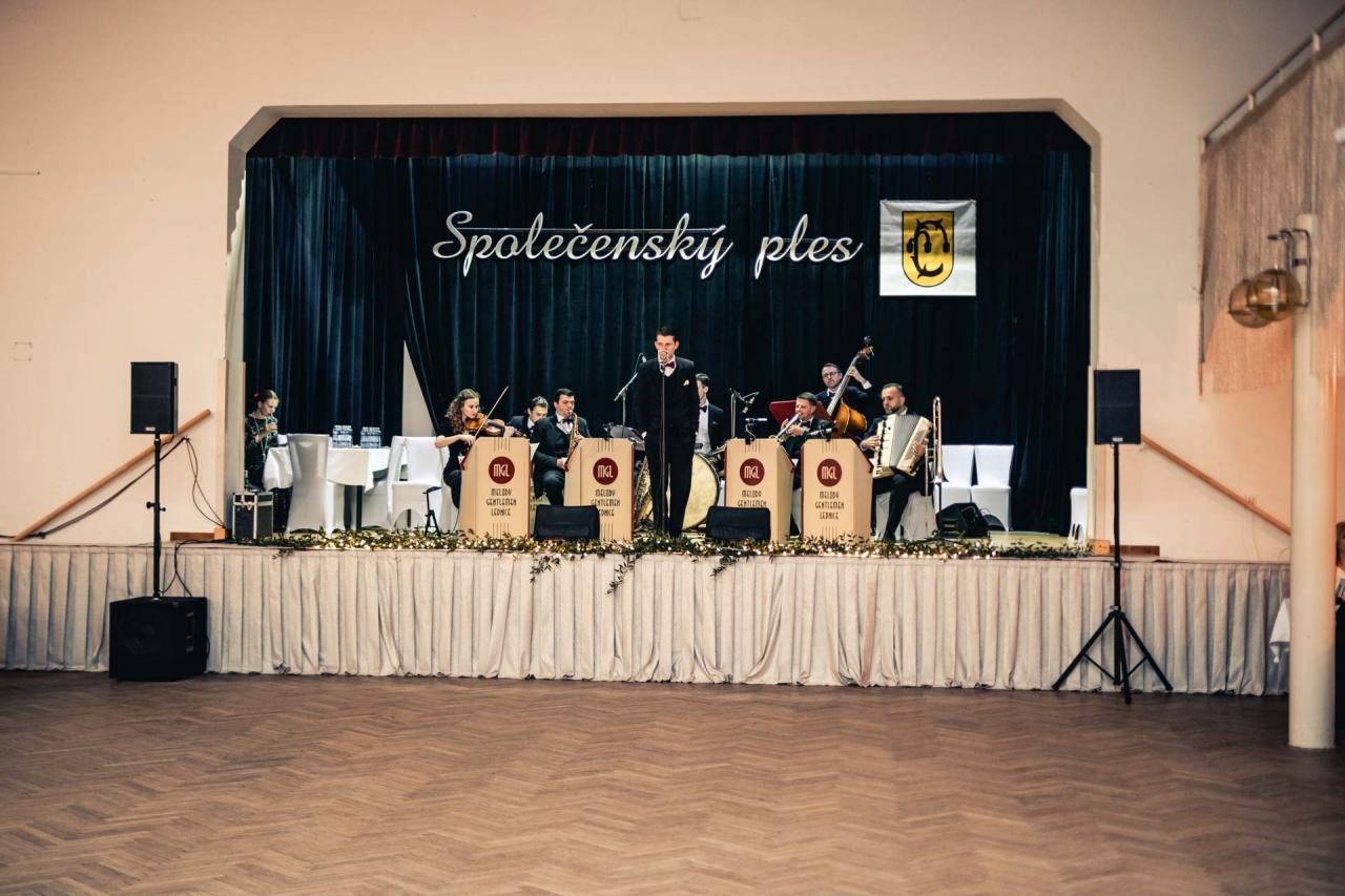 Večer zahájili mladí tanečníci z lanžhotské chasy tradiční polonézou. A pak už zněly sálem swingové písně v podání Melody Gentlemen, autentického dobového orchestru. Zprvu tančili jen ti nejzkušenější, ale v průběhu večera se parket zcela zaplnil a kdo chtěl, užíval si krásné melodie až do pozdních večerních hodin.