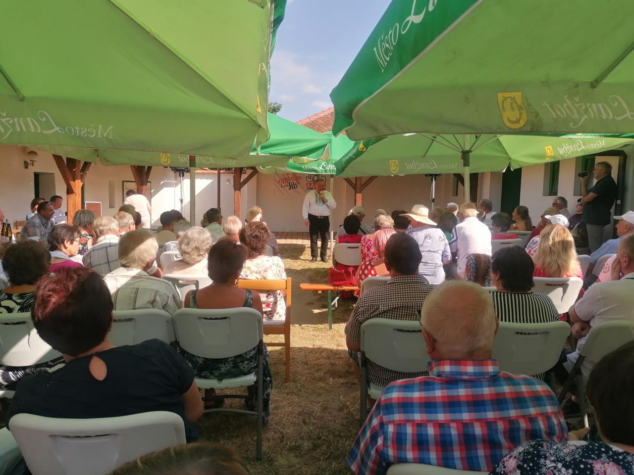 V první části programu dostal slovo lidový vypravěč, zpěvák, bavič, moderátor, osobnost Jižní Moravy, lanžhotský rodák a občan Franta Uher. I přes pálící sluníčko dokázal ve svižném tempu bavit diváky nepřetržitě více než hodinu. Kromě výborných vtipů a zábavných historek si diváci vychutnali i krásné písničky.