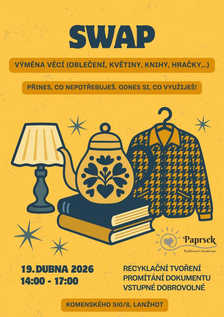 Přineste cokoliv, co už nepotřebujete, ale je to stále v pěkném stavu a může ještě udělat radost někomu dalšímu. Může jít například o knihy, oblečení, hračky, květiny, dekorace nebo domácí potřeby.