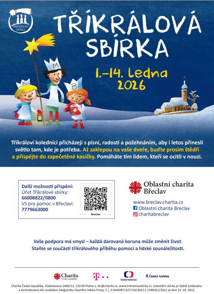 Tříkrálovou sbírku pořádá Oblastní charita Břeclav, výtěžek bude použitý na zkvalitnění a rozšíření poskytovaných sociálních a zdravotnických služeb na Břeclavsku, podpoří vznikající domácí hospicovou péči a humanitární pomoc v zahraničí, pomůže lidem v nouzi, kteří žijí pod hranicí důstojného života.