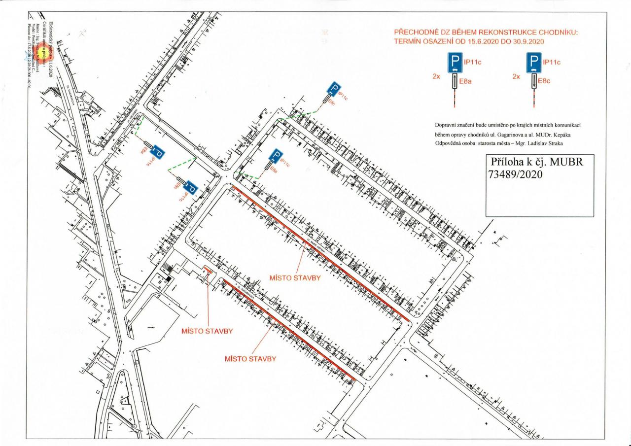 oznamujeme Vám, že v týdnu od 15. 6. 2020 započnou stavební práce na opravě chodníků na ulici Gagarinova a MUDr. Kepáka.