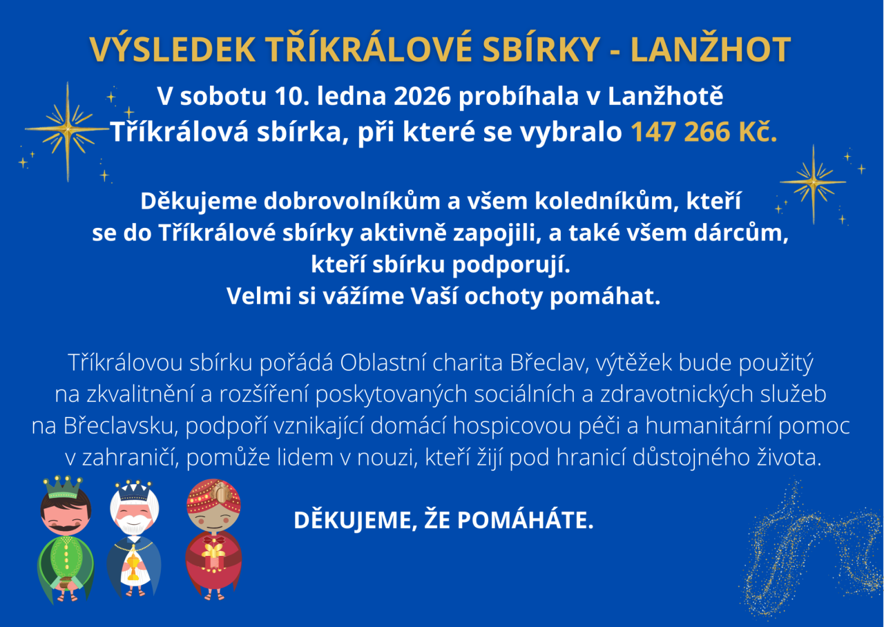 Děkujeme dobrovolníkům a všem koledníkům, kteří se do Tříkrálové sbírky aktivně zapojili, a také všem dárcům, kteří sbírku podporují.